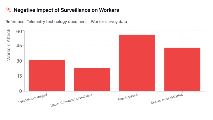 But here's what telemetry vendors don't advertise: 31% of monitored employees feel micromanaged, and 23% feel under constant surveillance10. The Victorian parliamentary investigation found Australian employers are increasingly surveilling employees, often without their knowledge11.